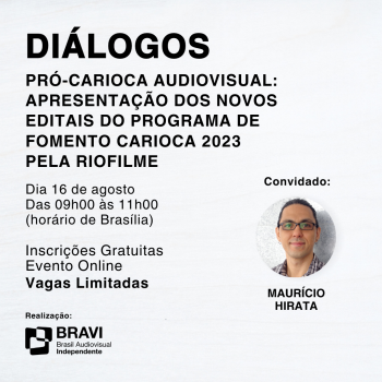 Notícias | 9 de agosto de 2023 DIÁLOGOS BRAVI | Pró-Carioca Audiovisual DIÁLOGOS BRAVI | Pró-Carioca Audiovisual APRESENTAÇÃO DOS NOVOS EDITAIS DO PROGRAMA DE FOMENTO CARIOCA 2023 PELA RIOFILME 09/08/2023 A BRAVI, em colaboração com a RioFilme,...