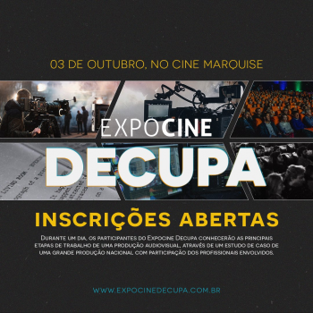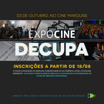Notícias | 18 de agosto de 2023 Inscrições abertas no EXPOCINE DECUPA Inscrições abertas no EXPOCINE DECUPA 18/08/2023 Estão abertas as inscrições para o EXPOCINE DECUPA, que acontece no Cine Marquise, Av. Paulista, no dia 03 de outubro....