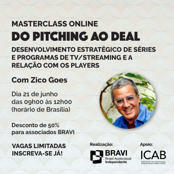 Notícias | 23 de maio de 2023 Masterclass Online: “Do Pitching ao Deal”, com Zico Goes. Masterclass Online: “Do Pitching ao Deal”, com Zico Goes. “Do Pitching ao Deal – Desenvolvimento Estratégico de Séries e Programas de TV/Streaming e a Relação com os Players” 23/05/2023...